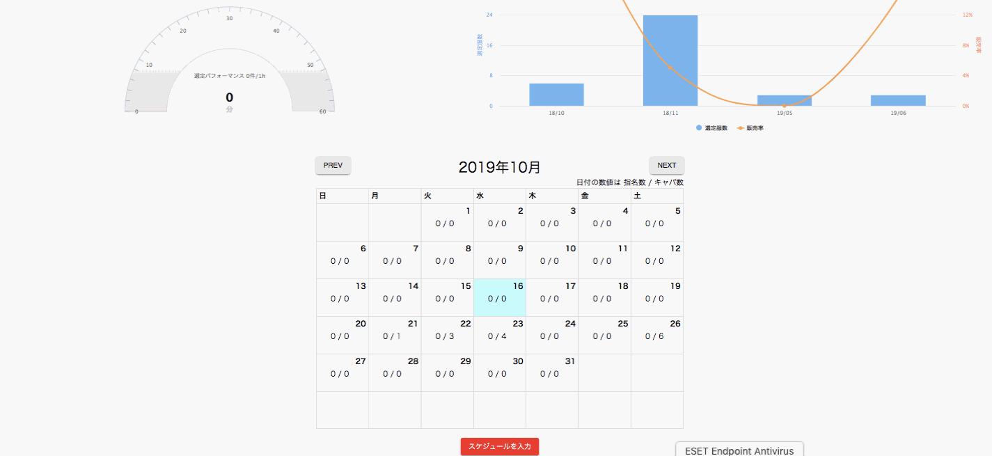 カレンダーの各日にちごとの分母が、キャパ、分子が指名が入っている数です。