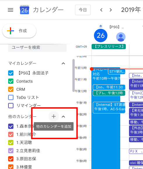 2.左側の「他のカレンダーを追加」の「+」をクリック