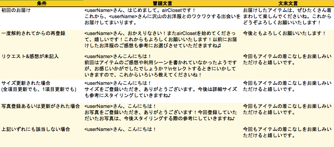 これまで、アクセサリーオプションの提案をしたり、次回要望を書かれているのに「聞かせてくださいね」と伝えてしまっていたり、条件と文言パターンが複雑化してお客様からのご意見もいただいてしまっておりました。