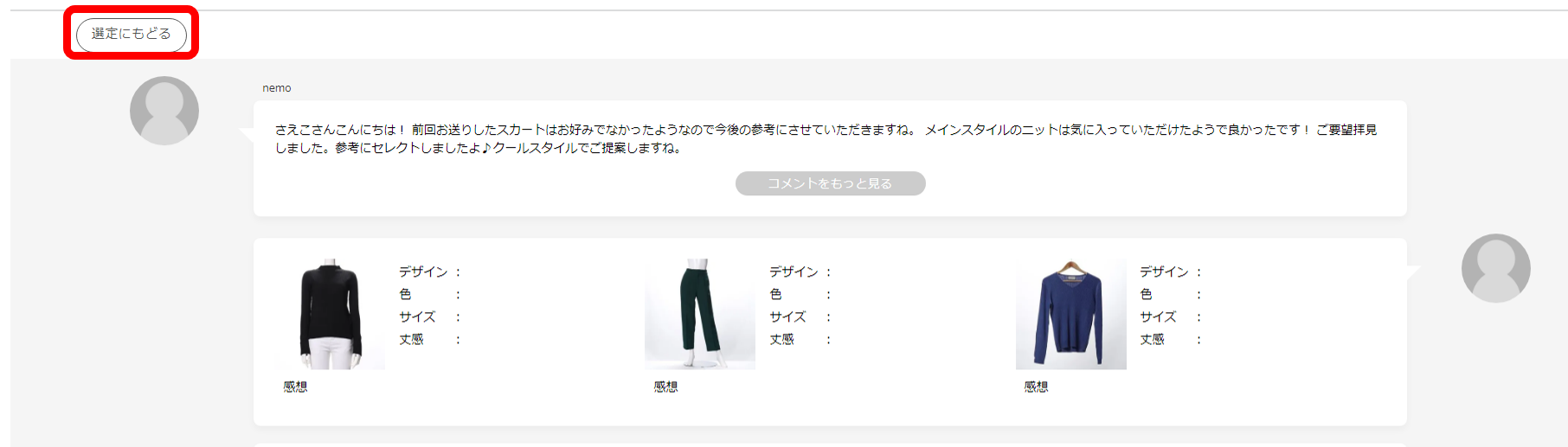 -理由- お客様の更新画面で「パーソナルカラー・骨格診断はあくまで参考として、写真やサイズ情報を重視してスタイリングいたします。」と記載があるためです。