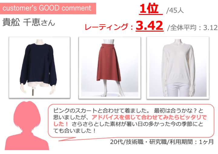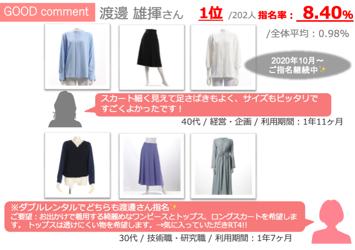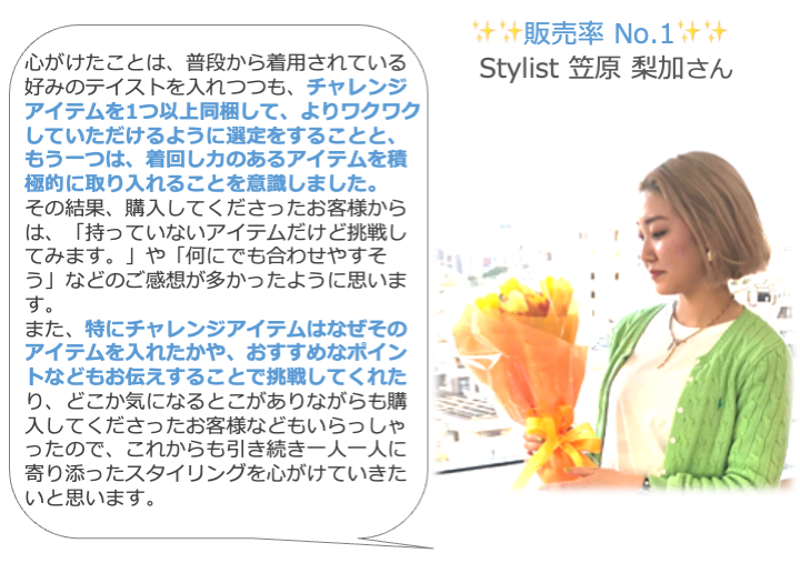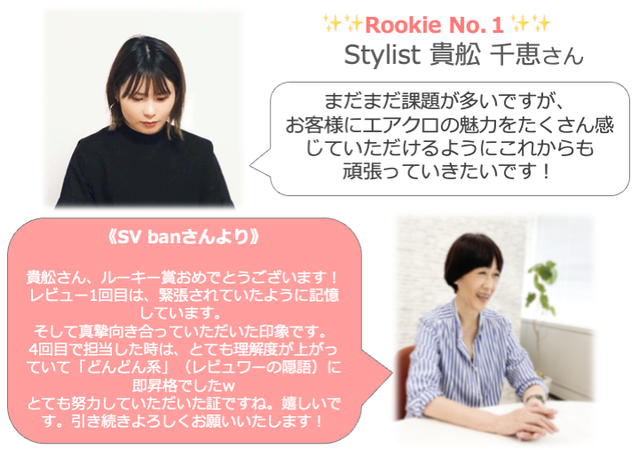 デビュー半年までのスタイリストさんの中から、レーティング1位の方のみが表彰されます。