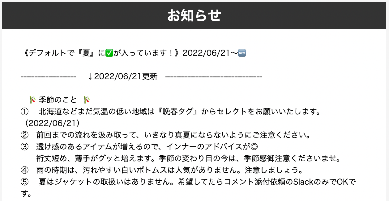 【Wiki更新】スタイリングコメントで気をつけるワード一覧を更新 _6/24