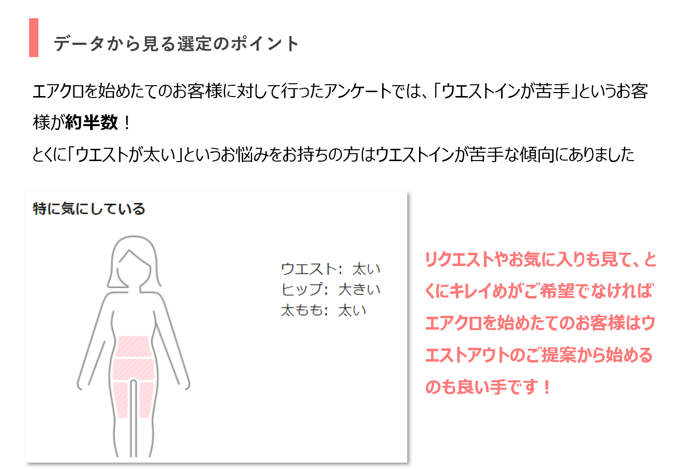 特に、エアクロを始めたてのお客様では、約半数がウエストインが苦手!
