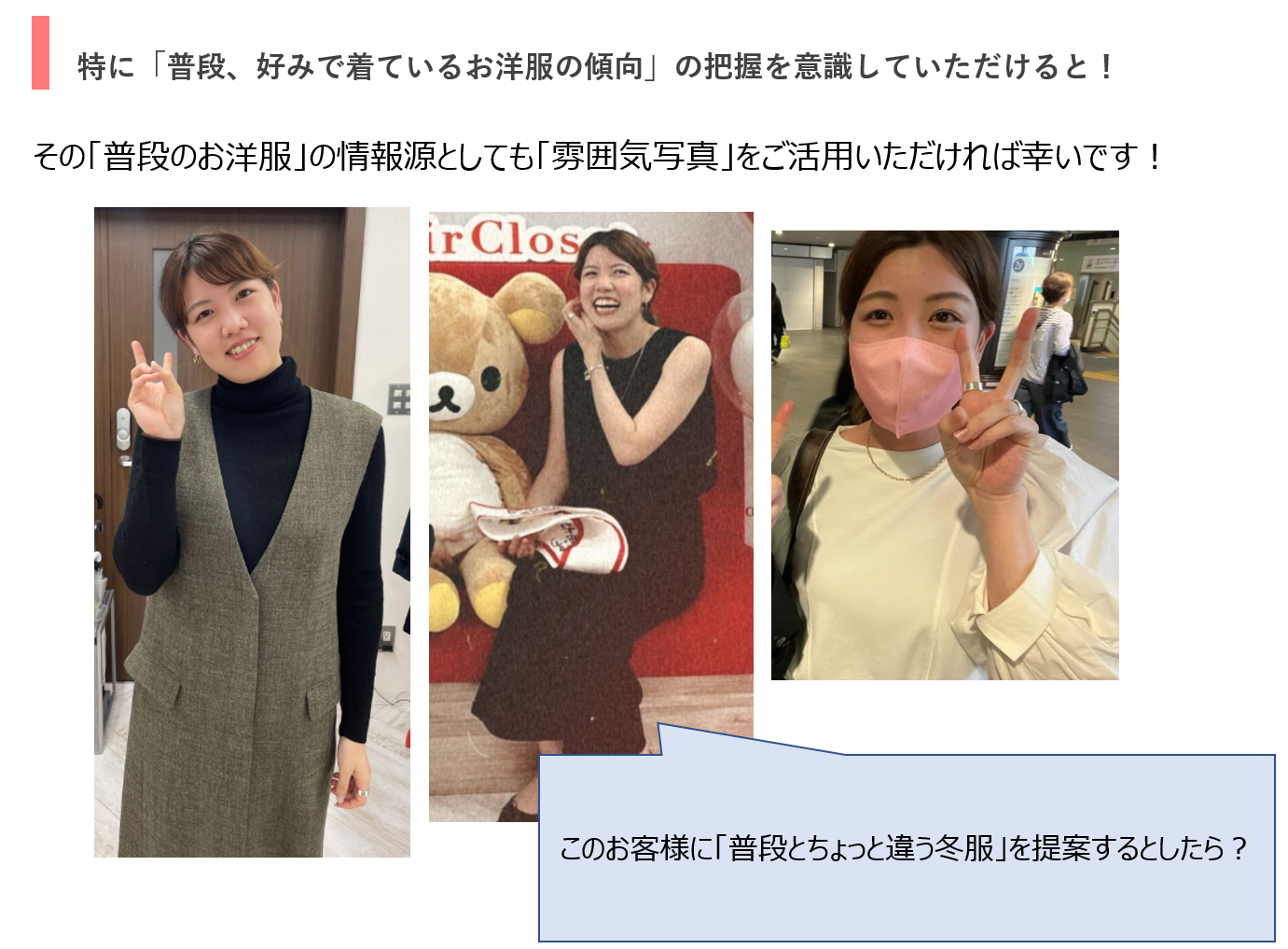 【重要】ウエストインが苦手なお客様は意外と多い /「雰囲気がわかる写真」から普段のお洋服の好みを把握すると、チャレンジすぎない提案がしやすい _11/5