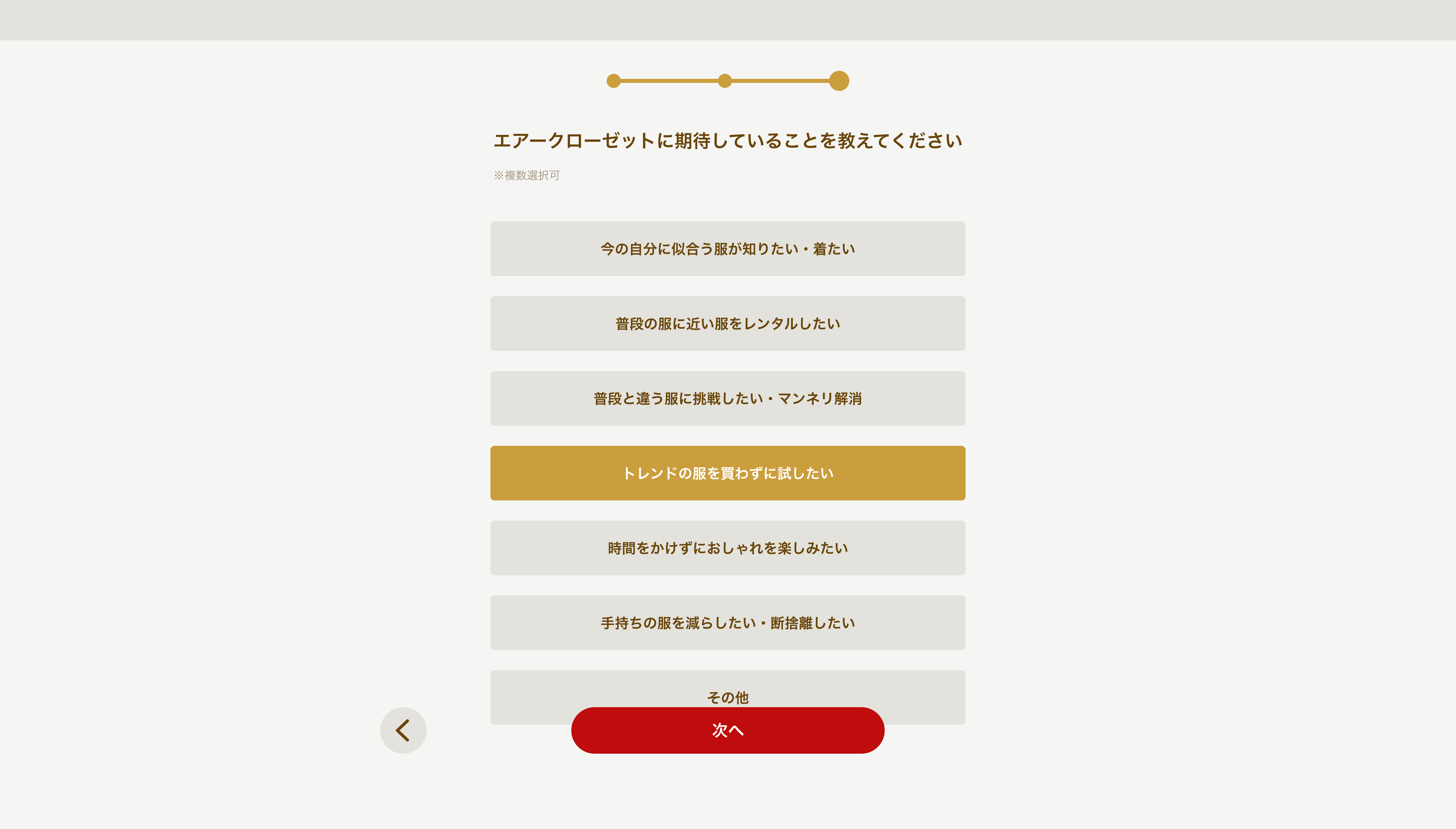 【重要】登録ステップで、エアクロへの期待とお洋服への苦手意識をヒアリングする検証を始めています_12/14
