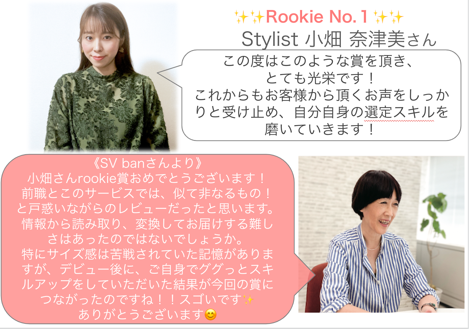 デビュー半年までのスタイリストさんの中から、レーティング1位の方のみが表彰されます。
