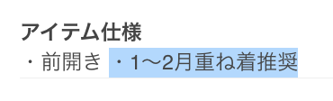 ・アイテム仕様メモに「1〜2月重ね着推奨」と記載のあるアイテム ※写真参照ください