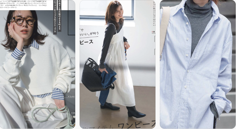 ・多くは「ブラウス」のシャツカテゴリーにあります!バイイングチームより、提案イメージをいただいているので参照ください!タートルネックや、リブニットなどの合わせ推奨です!