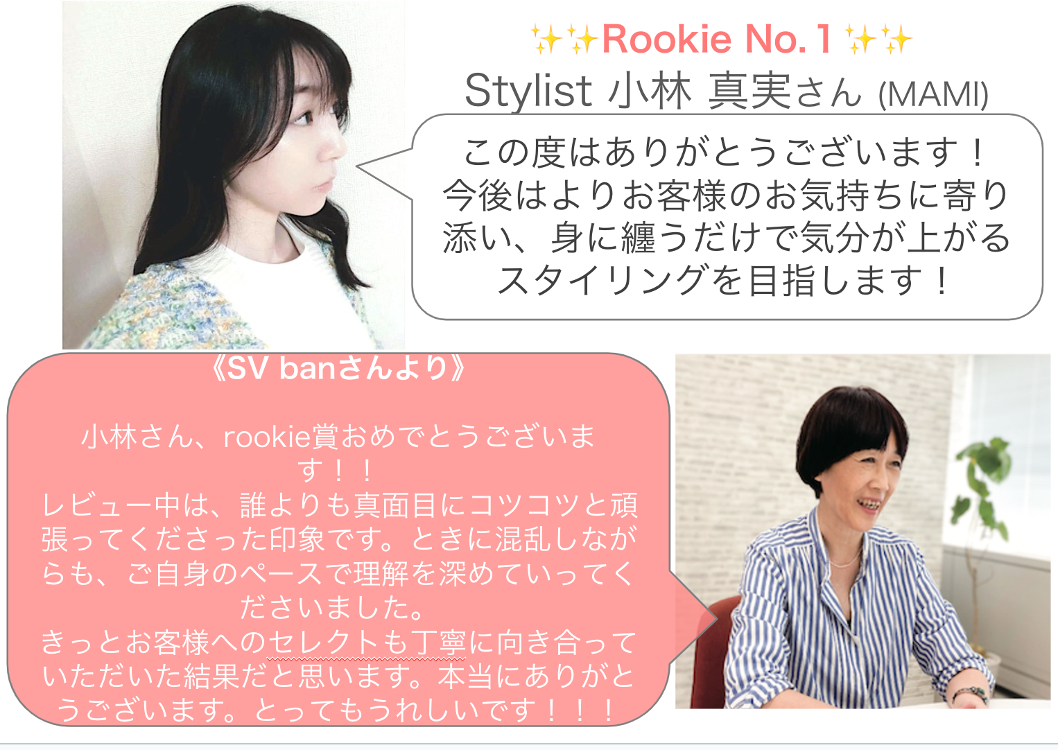 デビュー半年までのスタイリストさんの中から、レーティング1位の方のみが表彰されます。