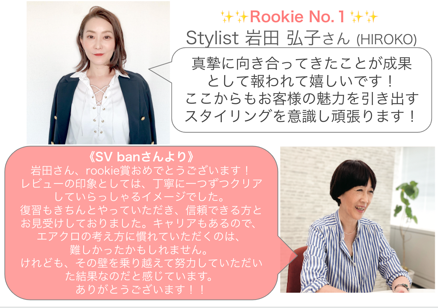 デビュー半年までのスタイリストさんの中から、レーティング1位の方のみが表彰されます。