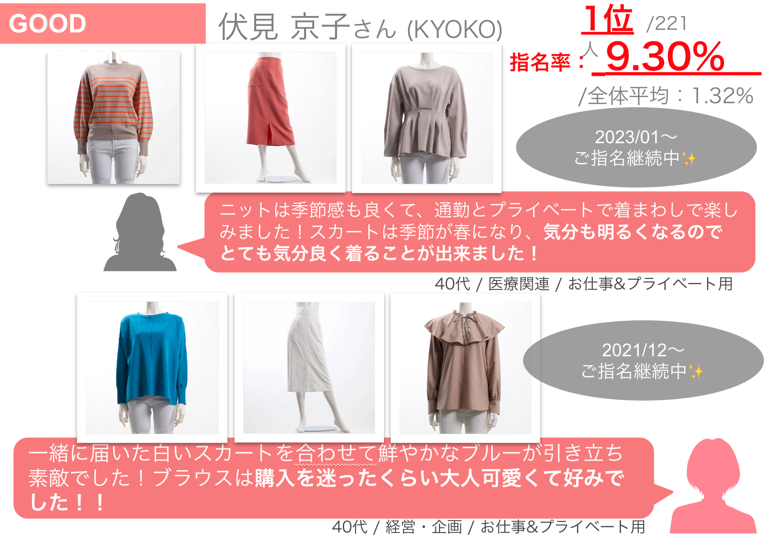 お客様からの個人指名をたくさんいただいたTOP3を表彰されます。 ※対象者選定件数150件以上が対象