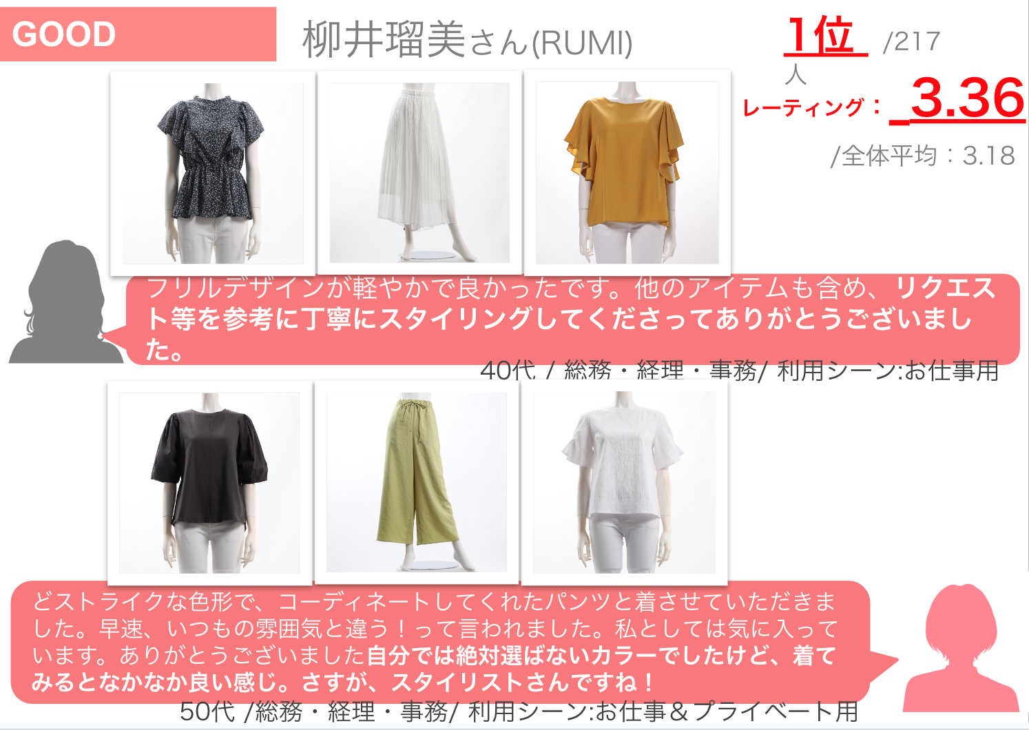 デビュー半年までのスタイリストさんの中から、レーティング1位の方のみが表彰されます。