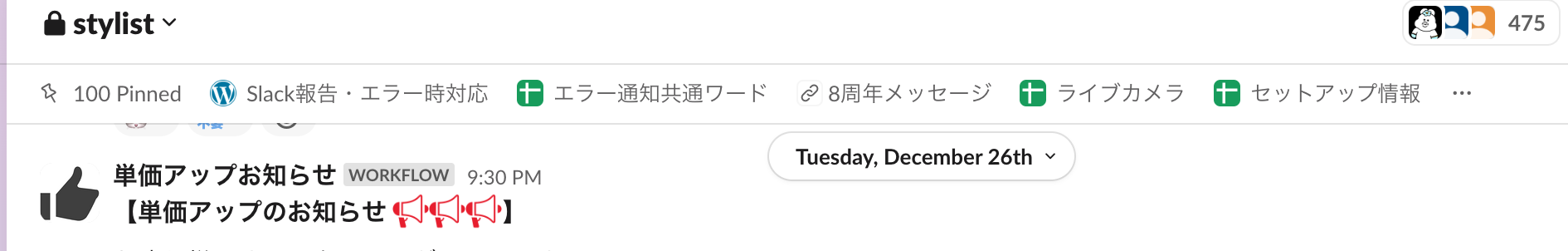①slackのスタイリストチャンネルの上段にある関連ページの並びにあります。