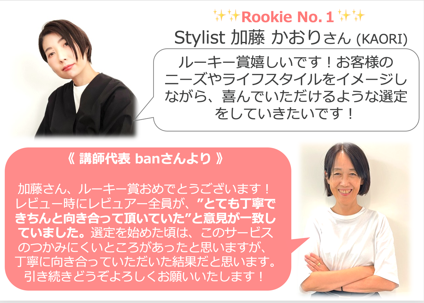 デビュー半年までのスタイリストさんの中から、レーティング1位の方のみが表彰されます。