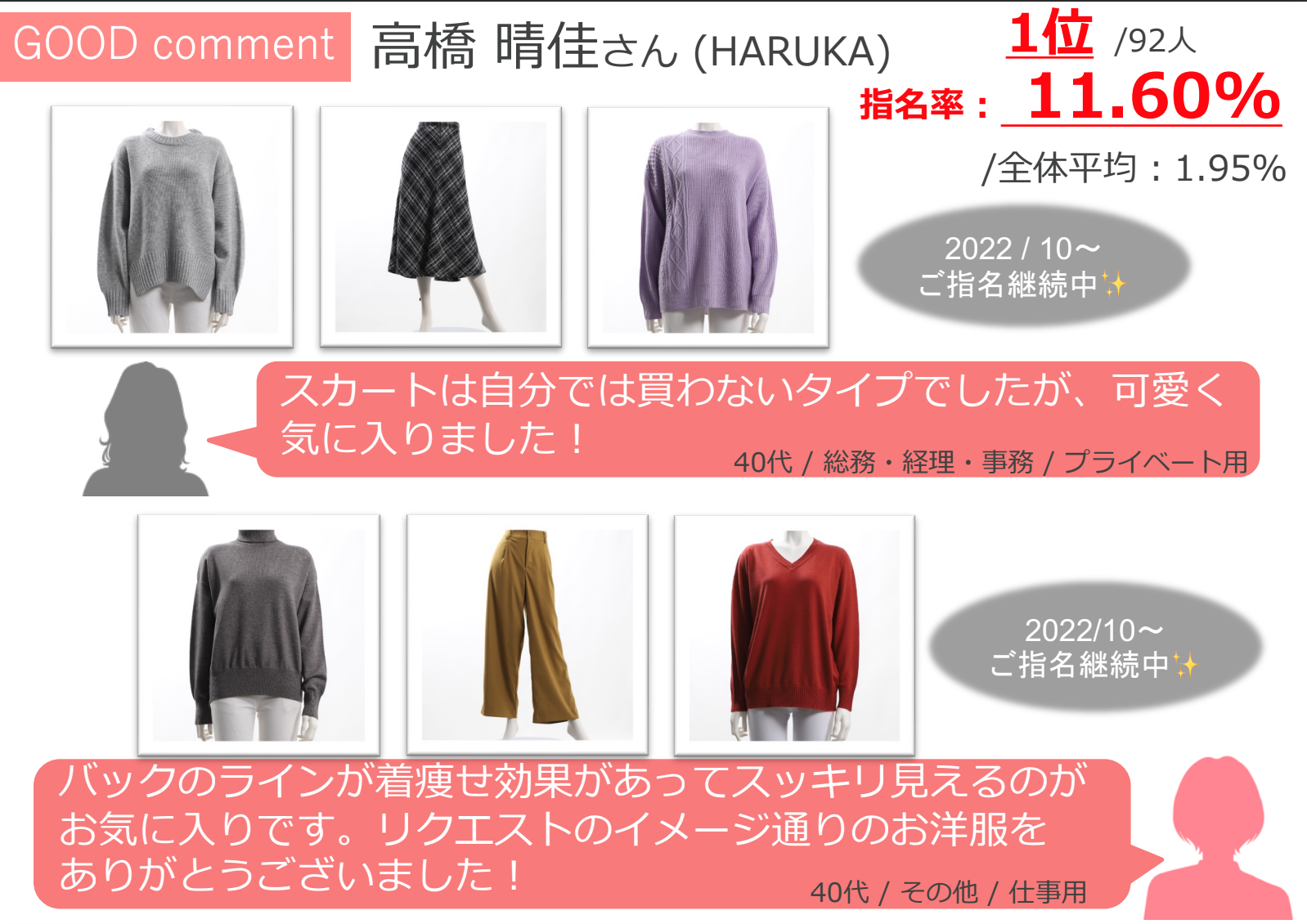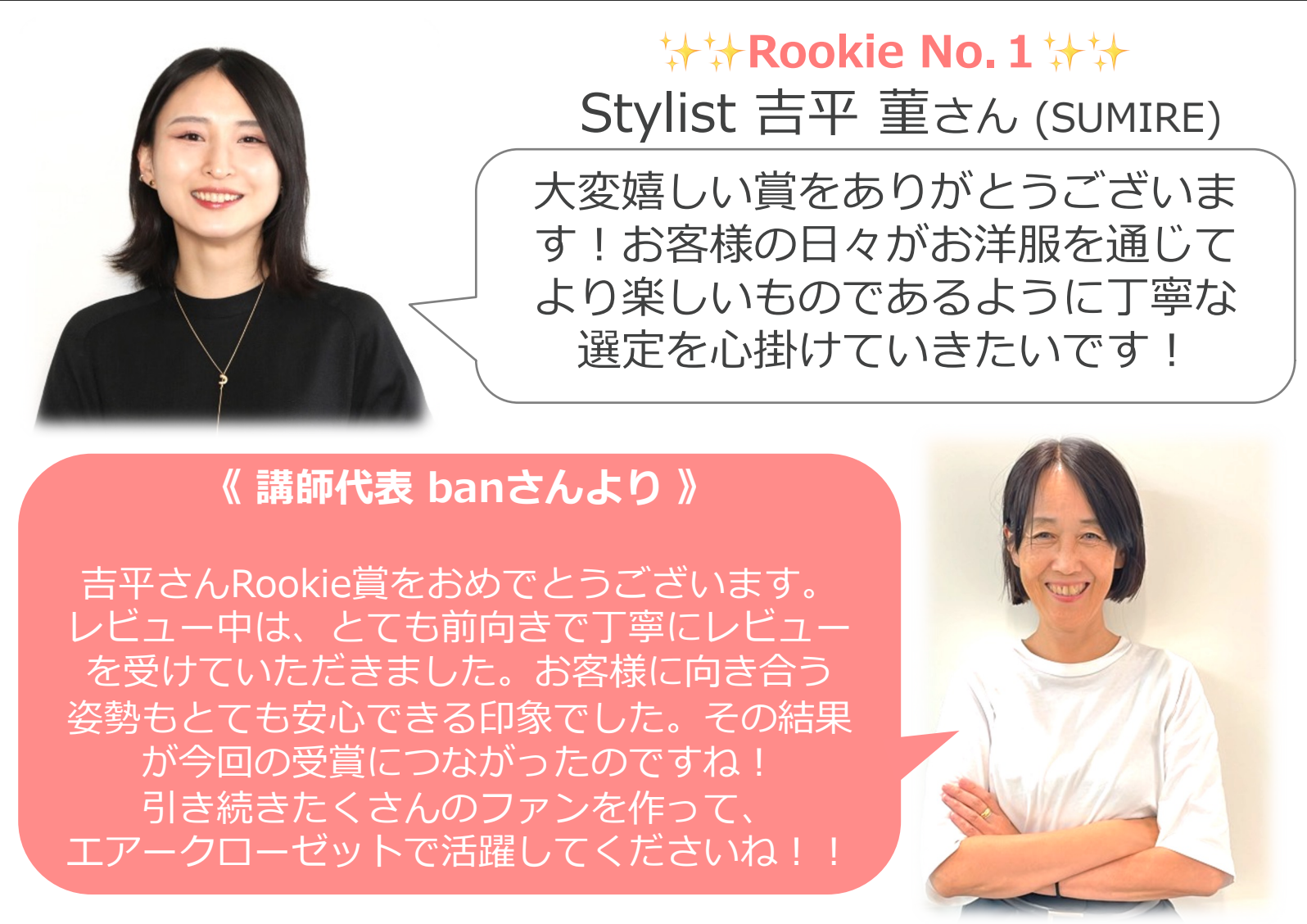 デビュー半年までのスタイリストさんの中から、レーティング1位の方のみが表彰されます。