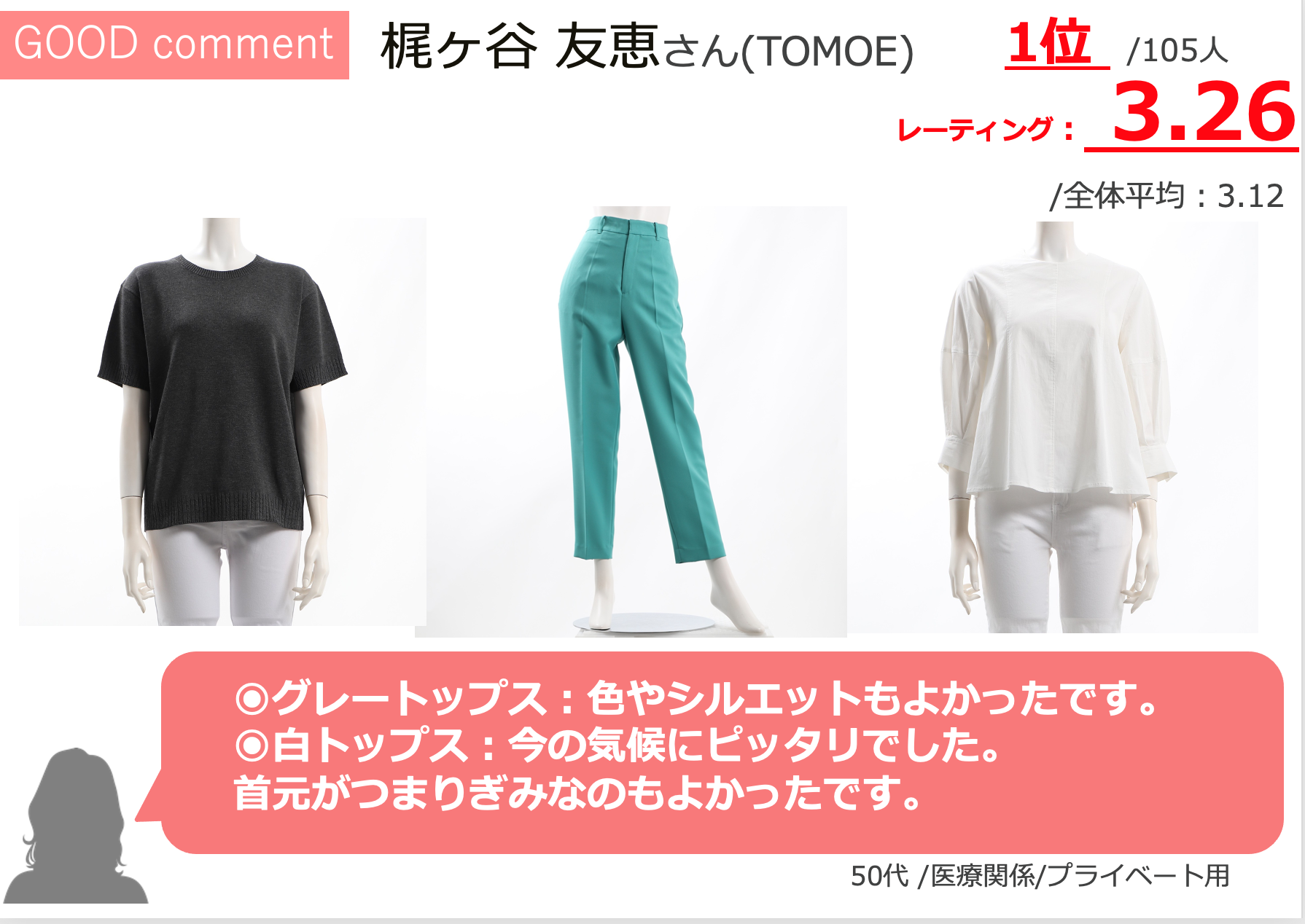 第1位 梶ヶ谷友恵さん