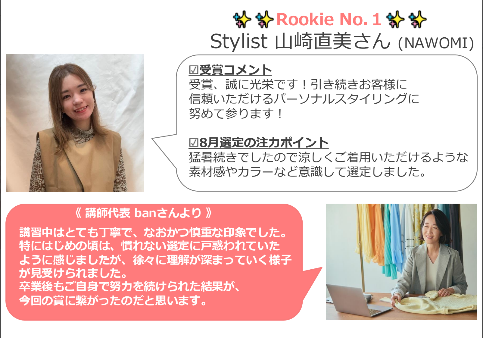 2024年8月度のスタイリストアワード受賞者の発表になります!