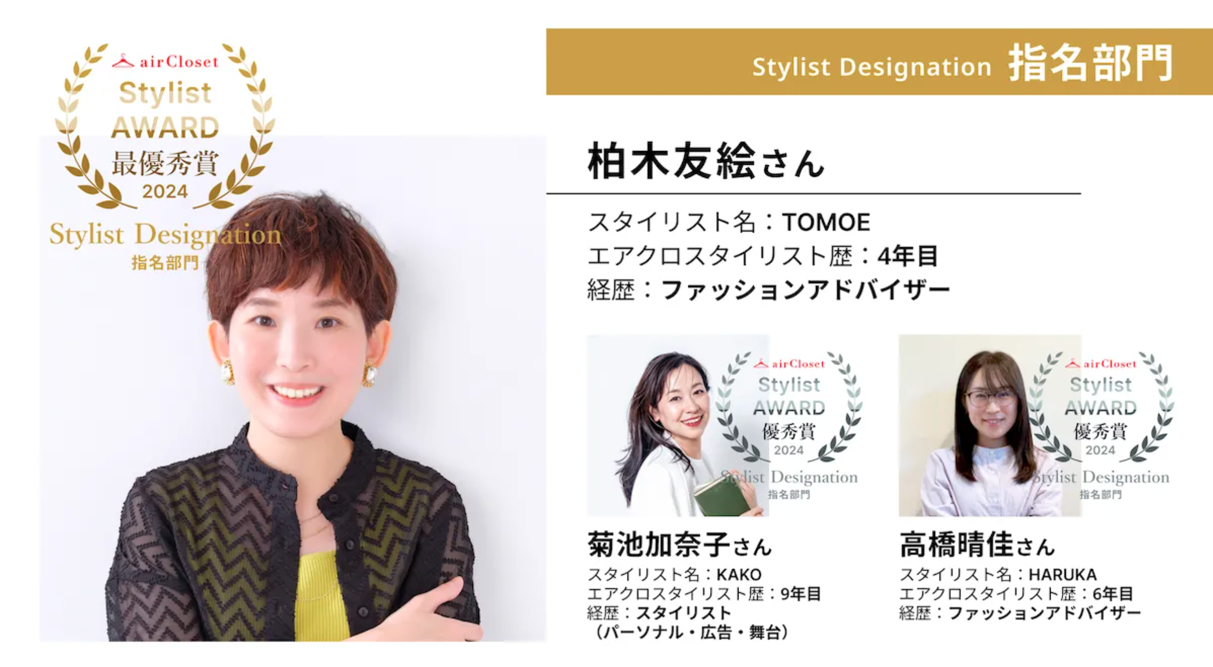 年間を通じてユーザーから最も支持されたスタイリストを表彰する「エアークローゼット スタイリストアワード 2024」を発表しました!
