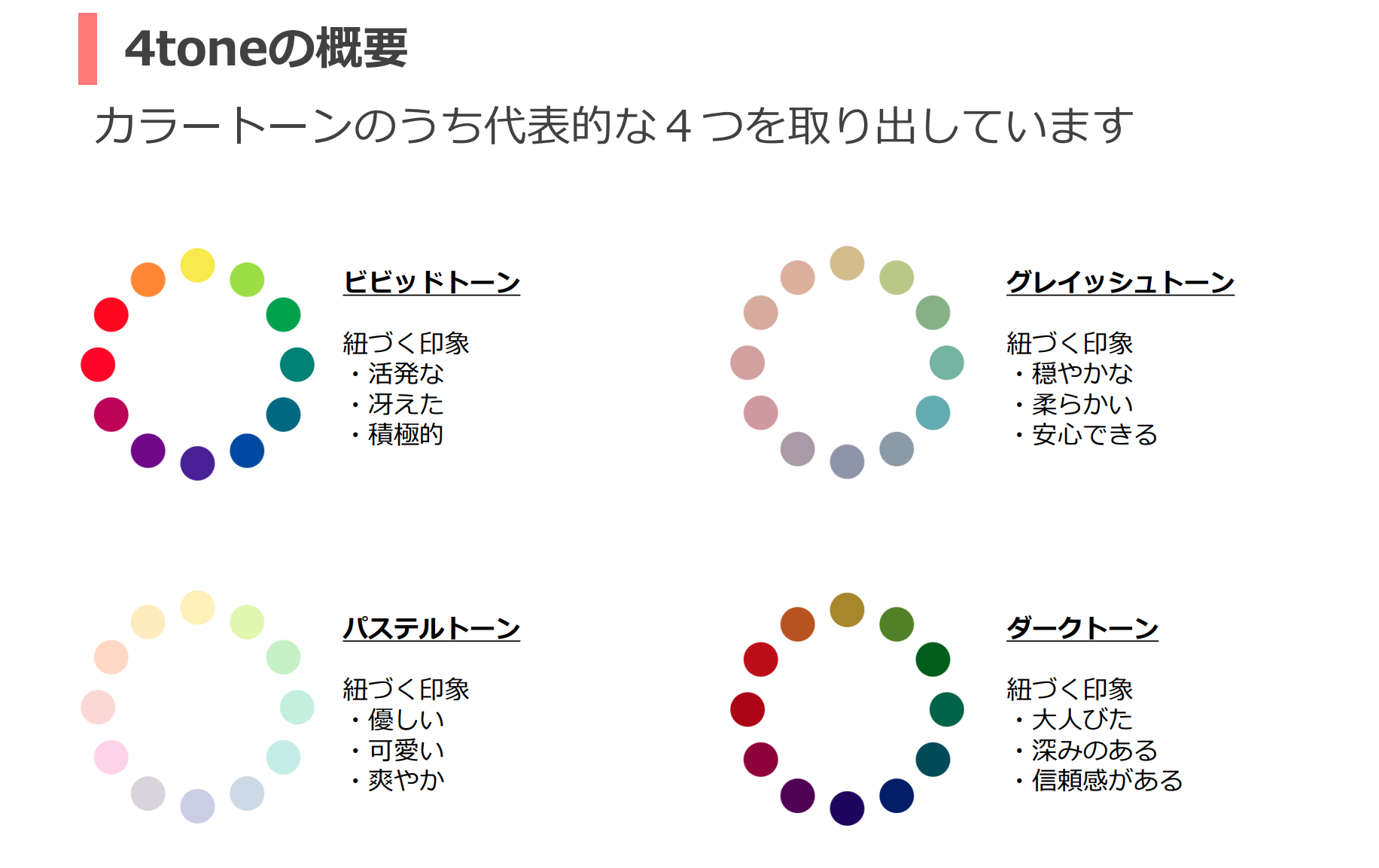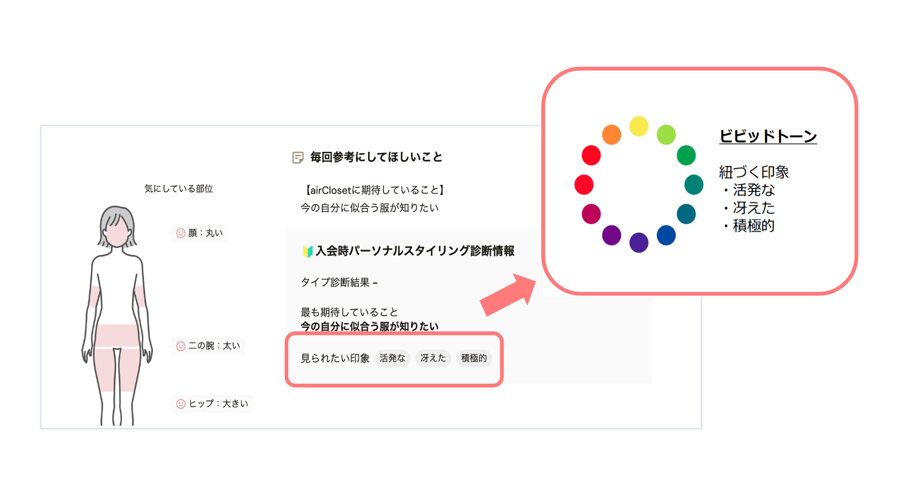 「入会時パーソナルスタイリング診断情報」にある、「見られたい印象」が4トーンと紐づいているので、添付のスクショを参考にしてみてください!
