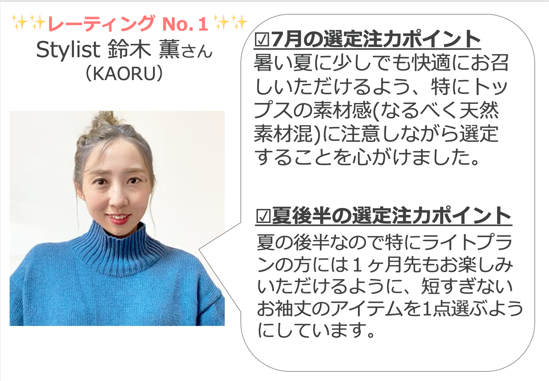 デビュー半年までのスタイリストさんの中から、レーティング1位の方のみが表彰されます。
