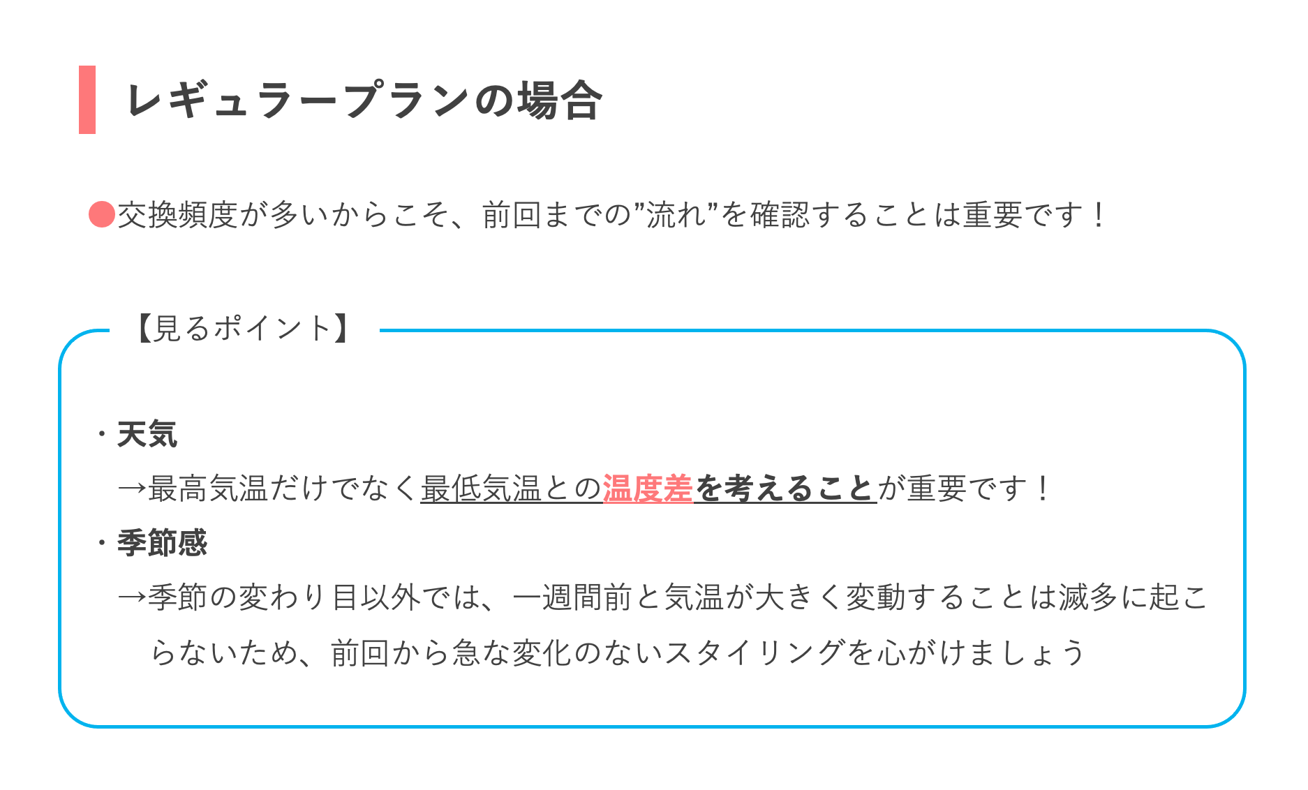 や、小物で差し色などの提案をつけてあげると良さそうですね!