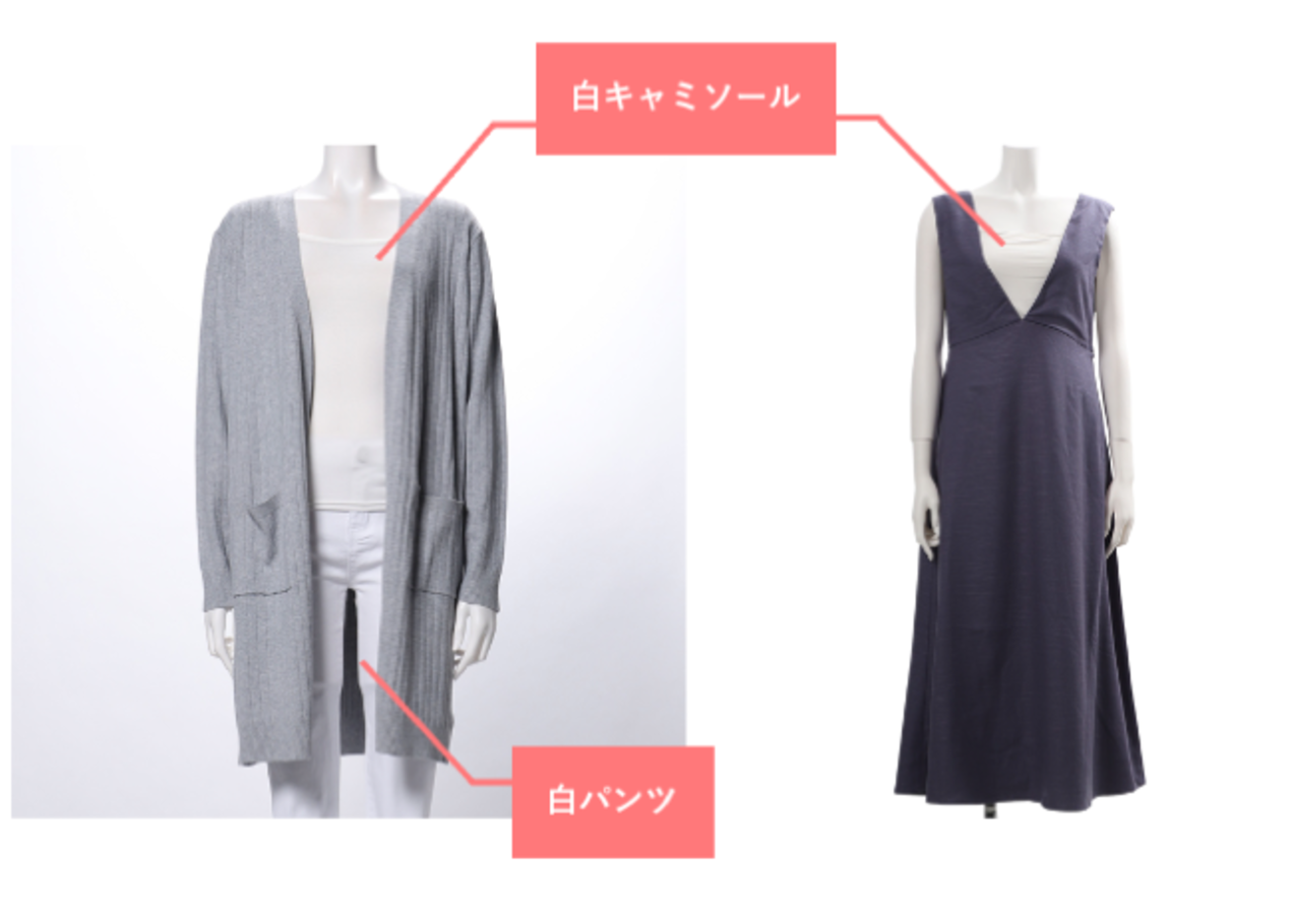 トップスの撮影時には、下に白のパンツを履かせています。