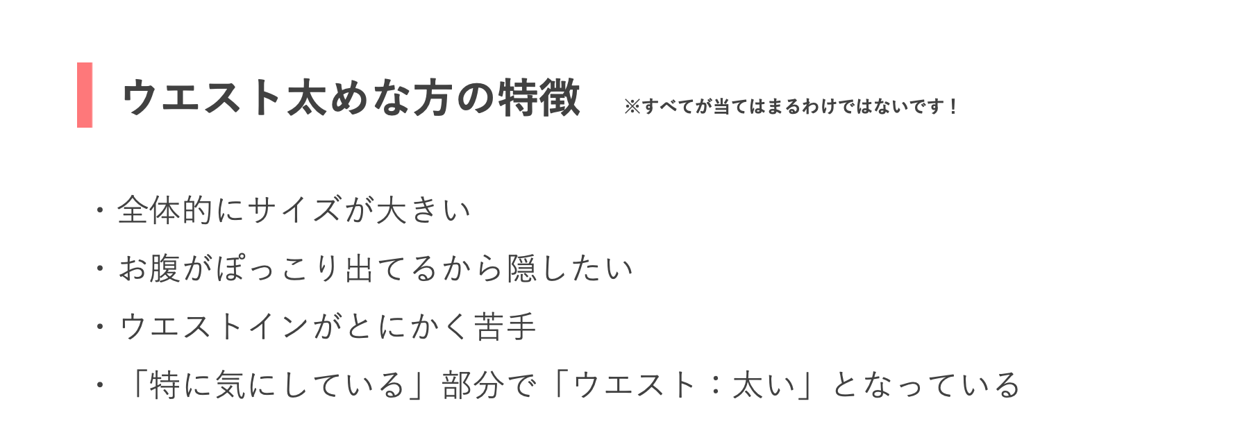⇨特にウエスト周りにお悩みがある方は、おしりや太ももも大きい可能性があります!