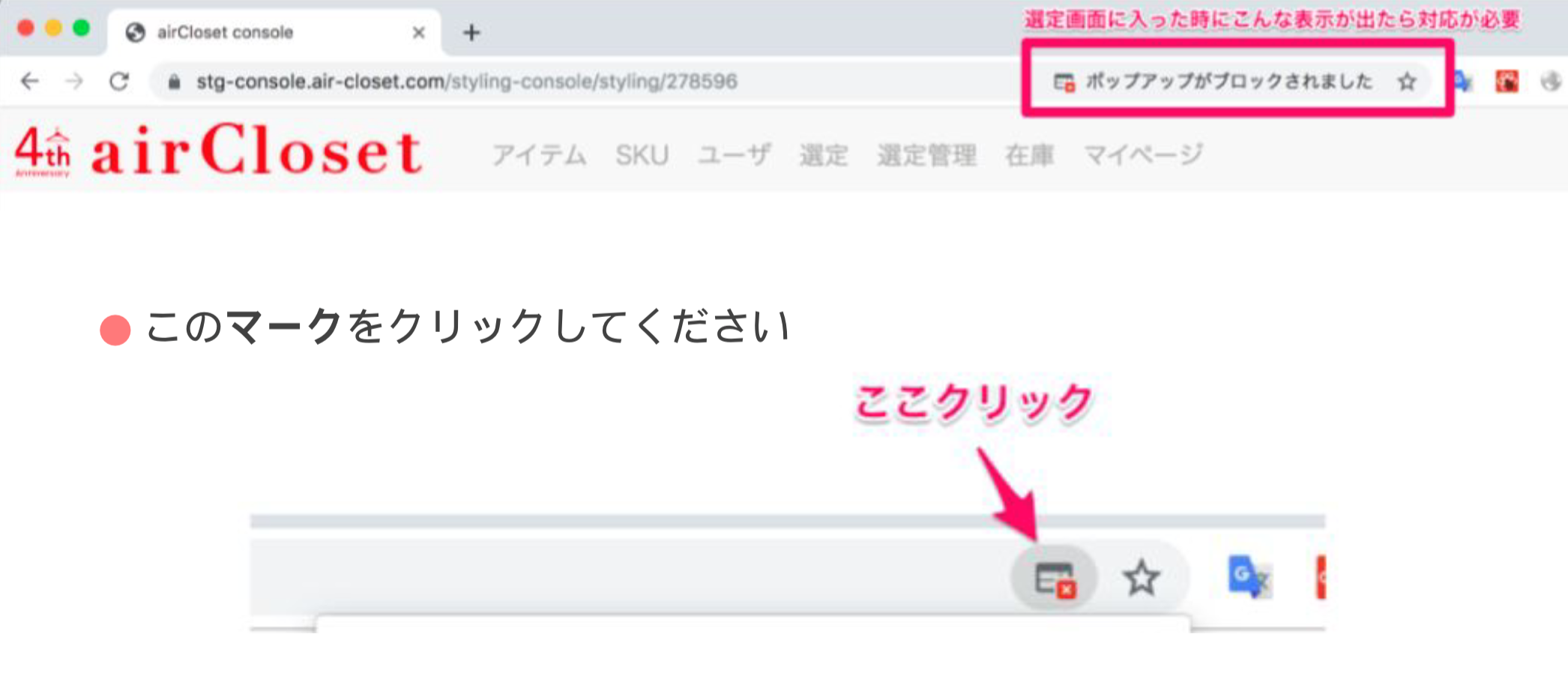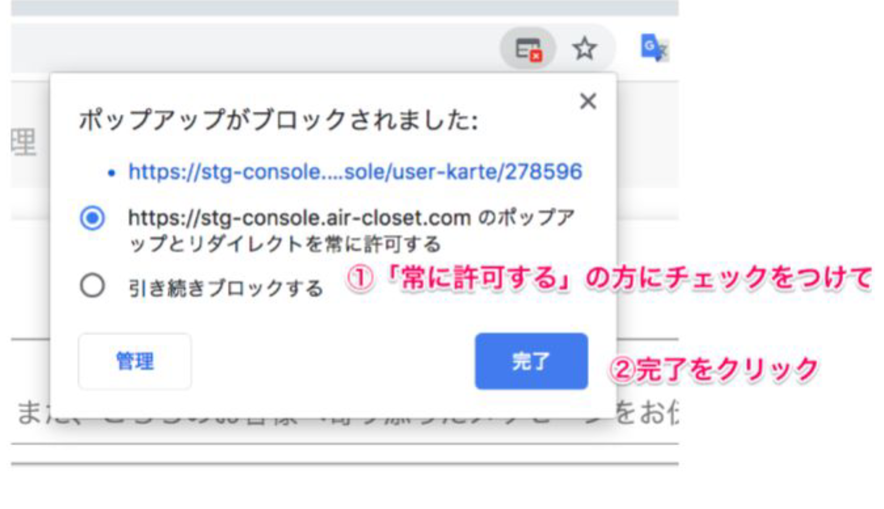 もし、タブが2つ開かない場合は、お使いのパソコンの設定上、ポップアップがブロックされている可能性があります。