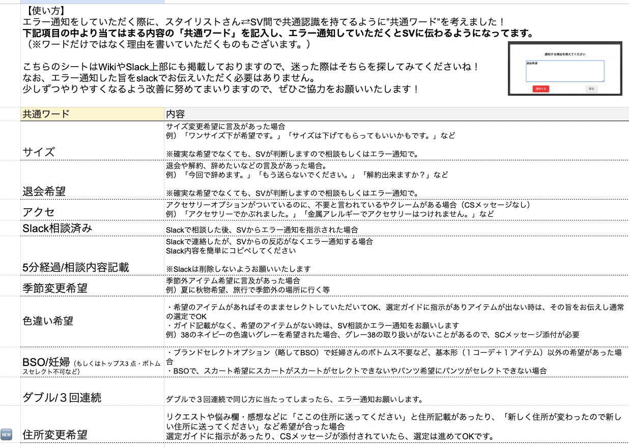エラー通知をしていただく際に、スタイリストさん⇄SV間で共通認識をもてるよう共通ワードを考えました!