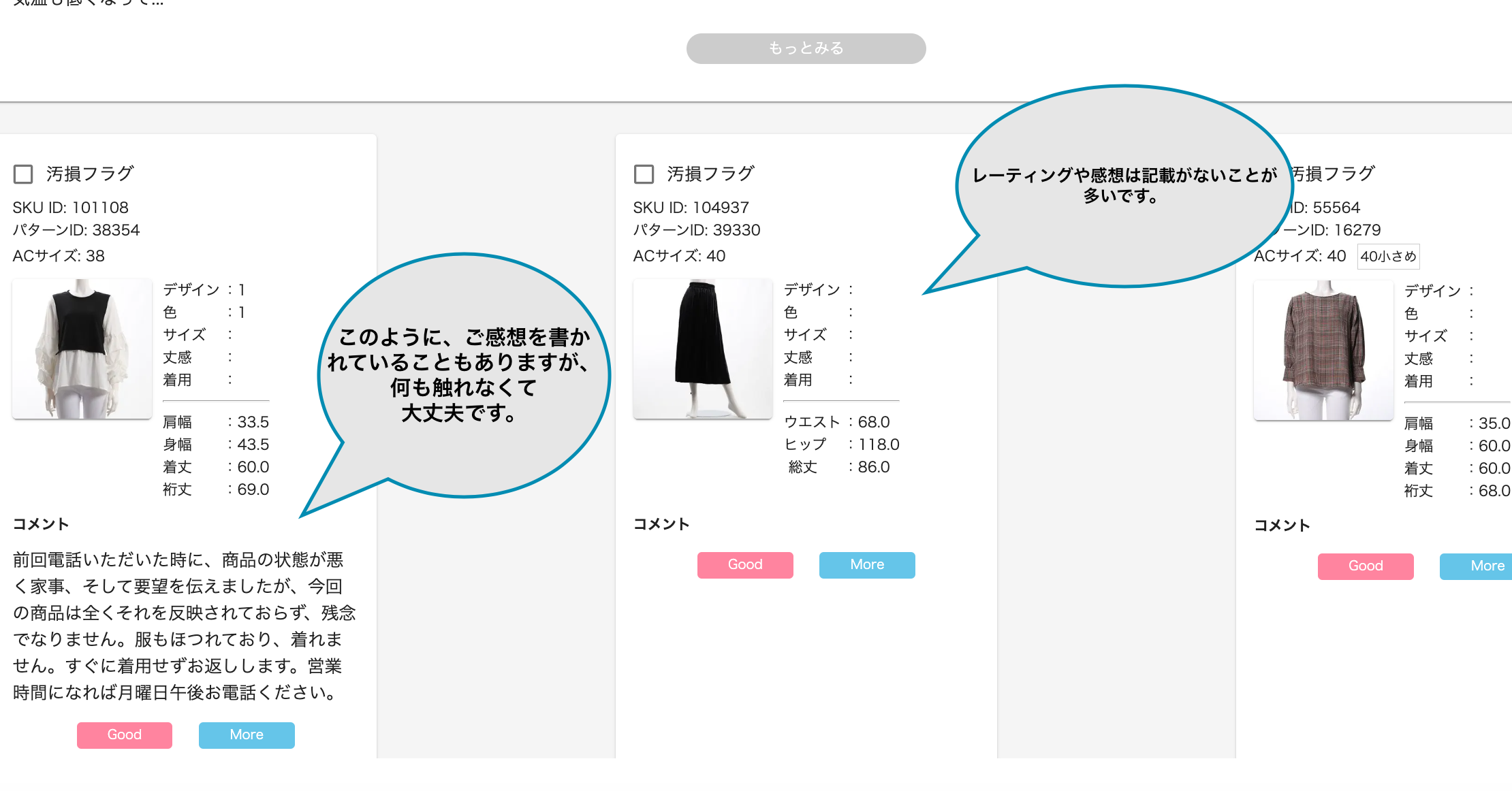 もし、スタイリングでお客様からかクレームが来てしまったら、”more”もしくはひよこチャンネルで共有させていただきます。