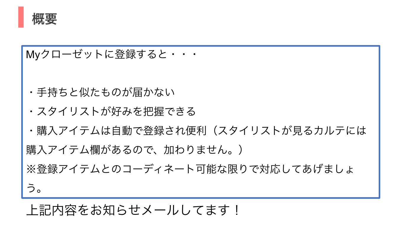 そのため、お客様から「先日買ったMyクローゼットにある黄色いスカートに合うトップスをお願いします」とご希望をいただくことがあります。