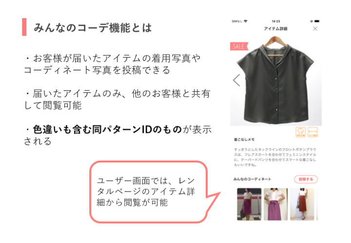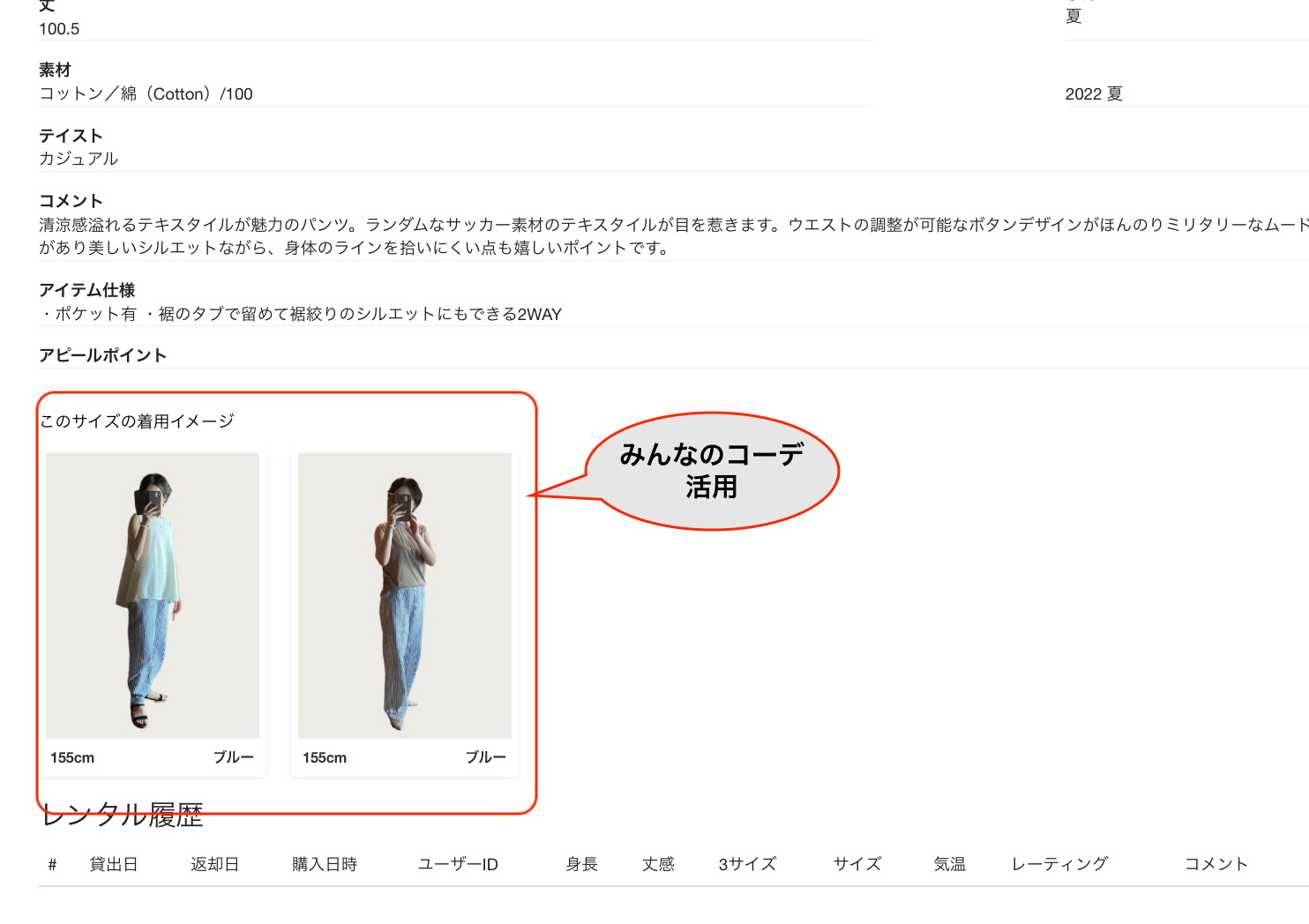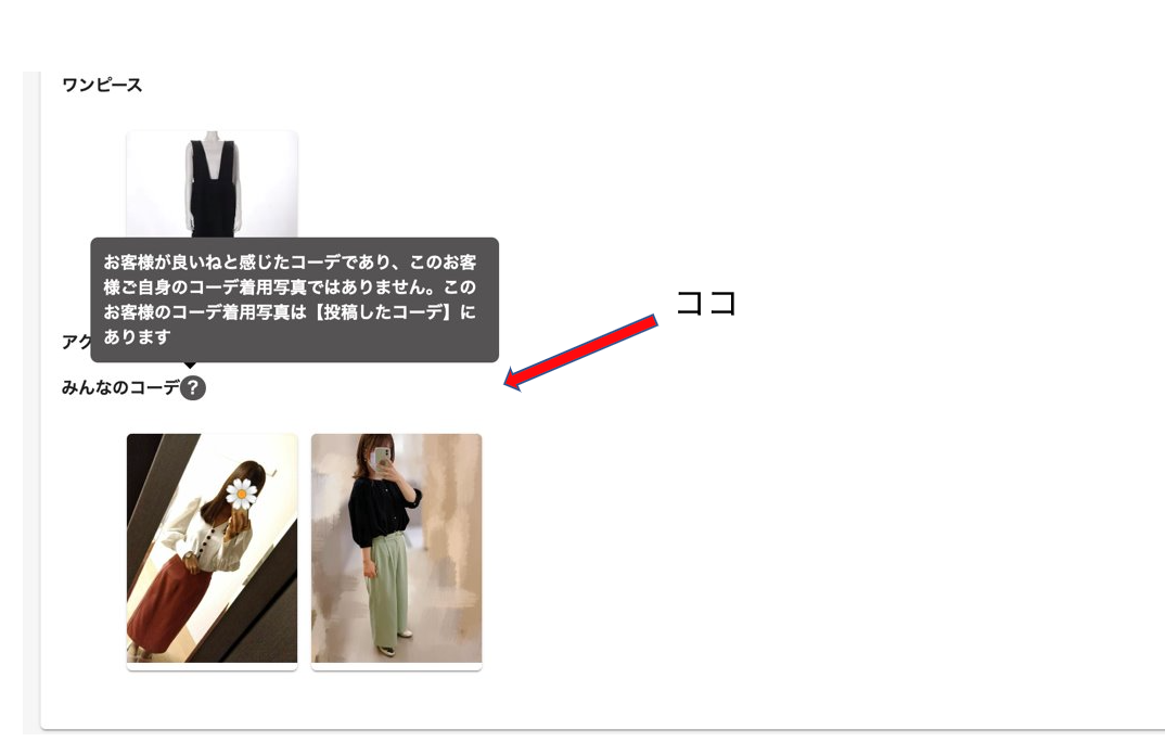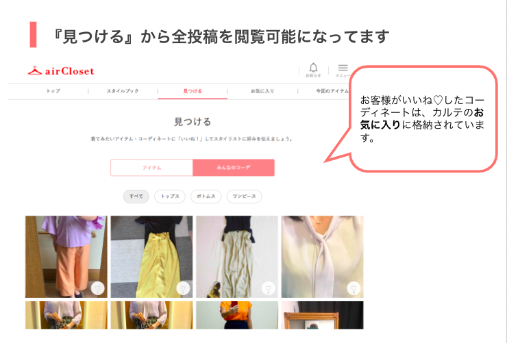 お客様のマイページでは、お届けされたアイテムのみんなのコーデ(他のお客様の着用)を見ることができます。 着こなしの参考にしています。